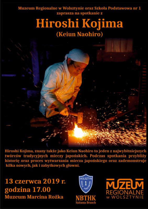 13 czerwca o godzinie 17.00 w Muzeum Marcina Rożka gościć będziemy Hiroshiego Kojimę z Japonii, Opowie nam o historii miecza japońskiego, metodzie jego wytwarzania oraz zademonstruje kilka nowych, jak i zabytkowych głowni. Nie będzie jednak przeprowadzał pokazu kowalstwa.