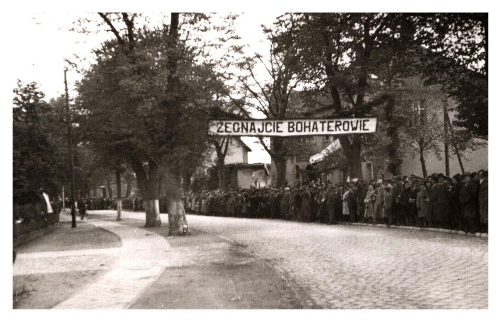 Uroczysty pogrzeb ofiar mordu na Bielniku. Kwiecień 1945